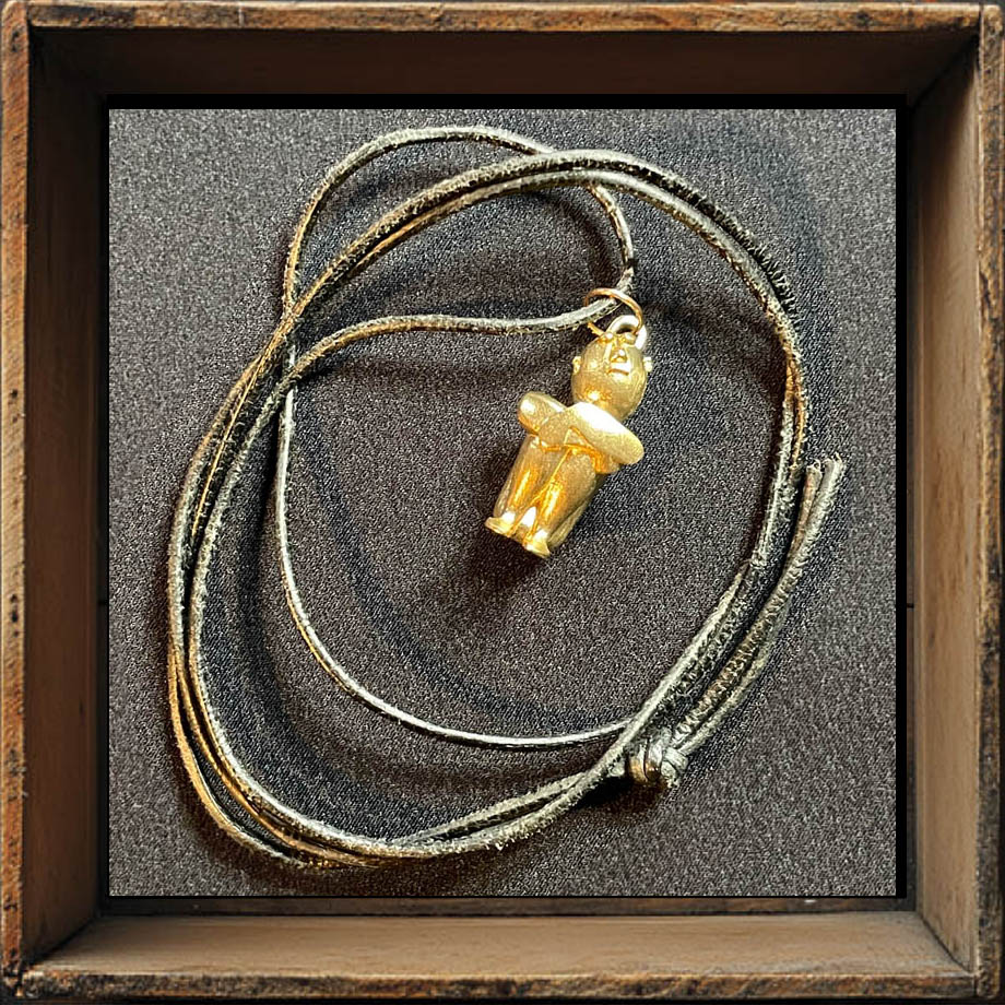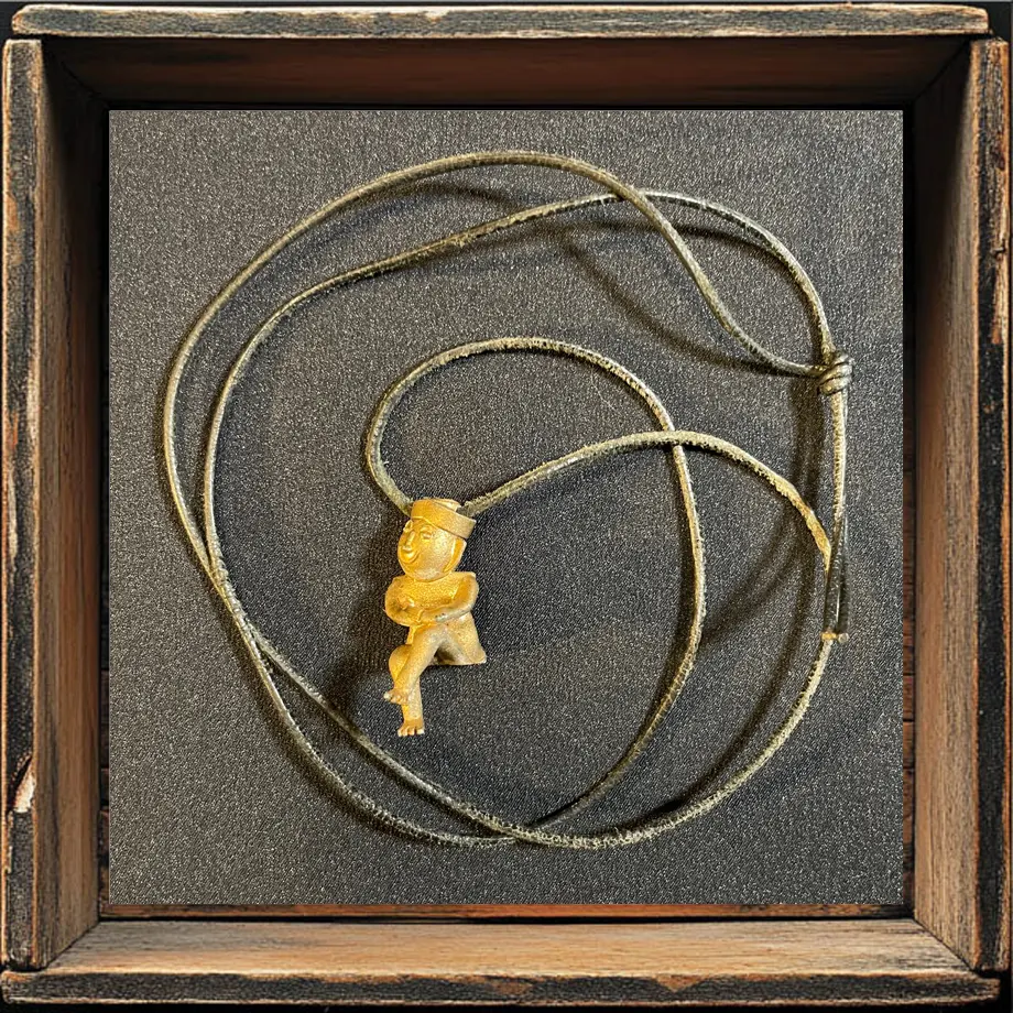 The  pendant made of brass. Dimensions: 14x19x33 mm